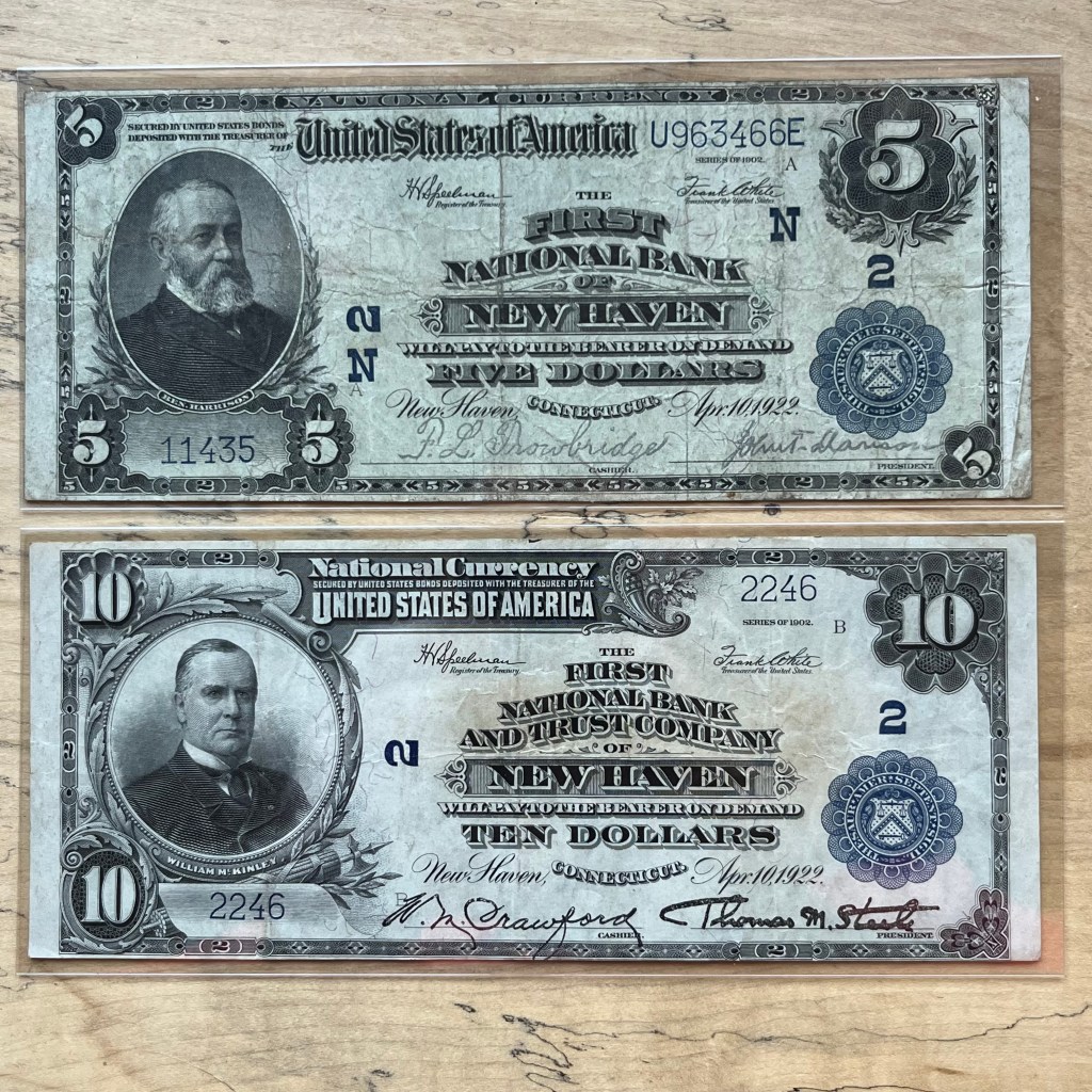 The First National Bank of New Haven was the second National Bank to receive their charter along with the first grouping of 5 in 1863 and its low charter number has made it a desired bank among Nationals collectors.